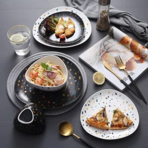 - Elevate your dining experience with our Nordic Irregular Dot Painting Ceramic Plate.